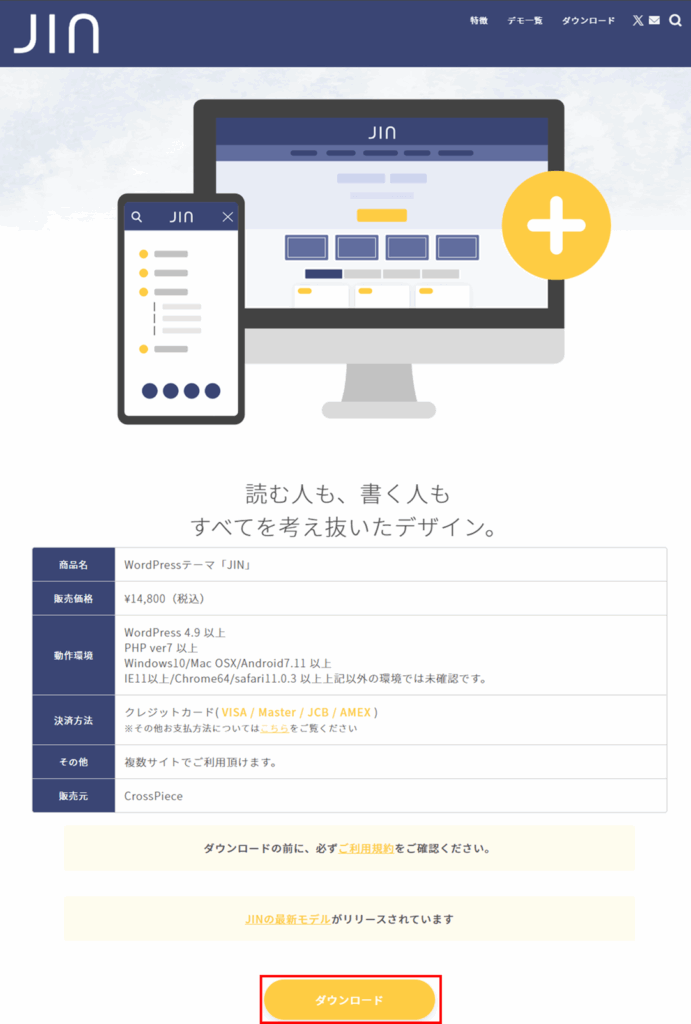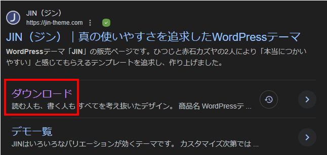 ①初めに『Wordpress JIN』と検索しサイトにアクセス