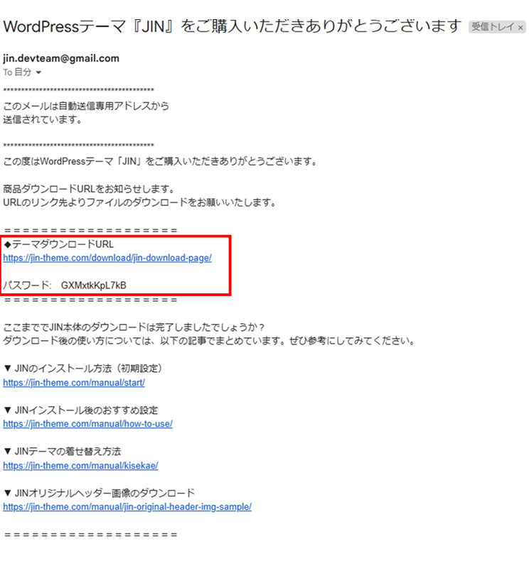 ⑥メールを確認しパスワードをコピーして『ダウンロードURL』をクリック