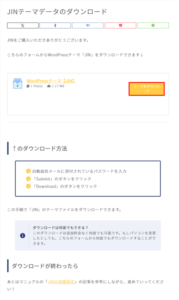 ⑦ページが開いたら『テーマをダウンロード』をクリック